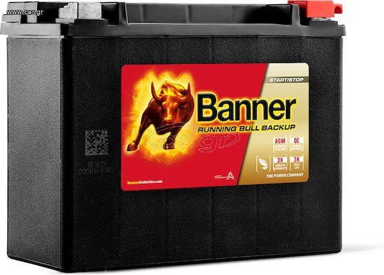 ΑΜΕΣΑ ΔΙΑΘΕΣΙΜΟ, Αποστολή από το κατάστημα από 1-3 ημέρες. Δυνατότητα τοποθέτησης μπαταρίας στο χώρο σας.Μπαταρία αυτοκινήτου Banner Running Bull Backup 51801 12V 20Ah: Η Μπαταρία αυτοκινήτου Banner Running Bull Backup 51801 12V 20Ah πληροί όλες τις προδιαγραφές του κατασκευαστή του οχήματός σας. Έρχεται προφορτισμένη από το εργοστάσιο κατασκευής και είναι έτοιμη να τοποθετηθεί. Λόγω του ότι είναι κλειστού τύπου ελαχιστοποιεί τις απαιτήσεις για συντήρηση. Δε χρειάζεται ποτέ συμπλήρωμα υγρών. Σε μεγάλους περιόδους ακινησίας ένα περιοδικό φόρτισμα θα συμβάλλει στο να βελτιστοποιηθεί η διάρκεια ζωής της. Χαρακτηριστικά: Μπαταρία AGM με βαλβίδα ανασυνδυασμού (VRLA). Ποικιλία τριών τύπων μπαταριών με χωρητικότητες από 9 έως 20 Ah. Χρησιμοποιείται από Audi, BMW και Volvo ως εξάρτημα αρχικού εξοπλισμού. Τρεις φορές μεγαλύτερη αντίσταση στην εκφόρτιση από τις συμβατικές μπαταρίες εκκίνησης. Στεγανή από διαρροές εξαιτίας της δέσμευσης του ηλεκτρολύτη μέσα στον απορροφητικό υαλοβάμβακα. Μηδενική συντήρηση χάρη στην τεχνολογία ανασυνδυασμού αερίων. Δυνατότητα εγκατάστασης σε πλάγια θέση (μέγιστη γωνία 90°).